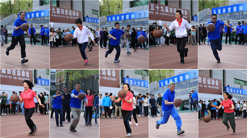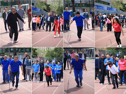 荣获滚铁环第三名、运球接力第八名和同心鼓第七名的优异成绩;个人项目方面,齐柏平老师在掷实心球(男子教工A组)项目中获得第七名的好成绩。赛场上,参赛老师们精神抖擞愈战愈勇,精湛的个人技能和完美的团队协作不时引来一片片叫好声;赛场边,观赛的老师们热情高涨全力呐喊,用一阵阵喝彩声为运动员们加油鼓劲。