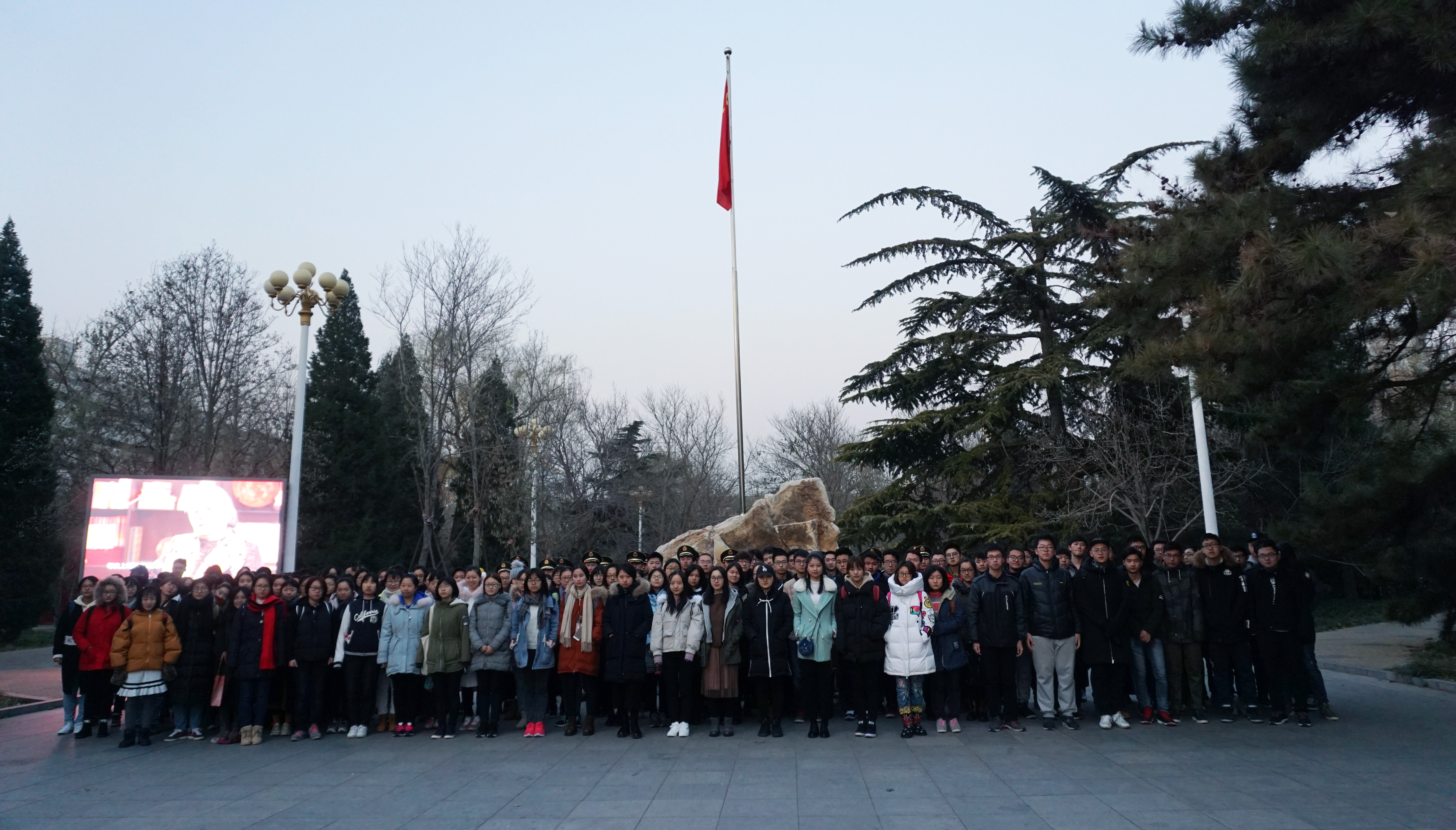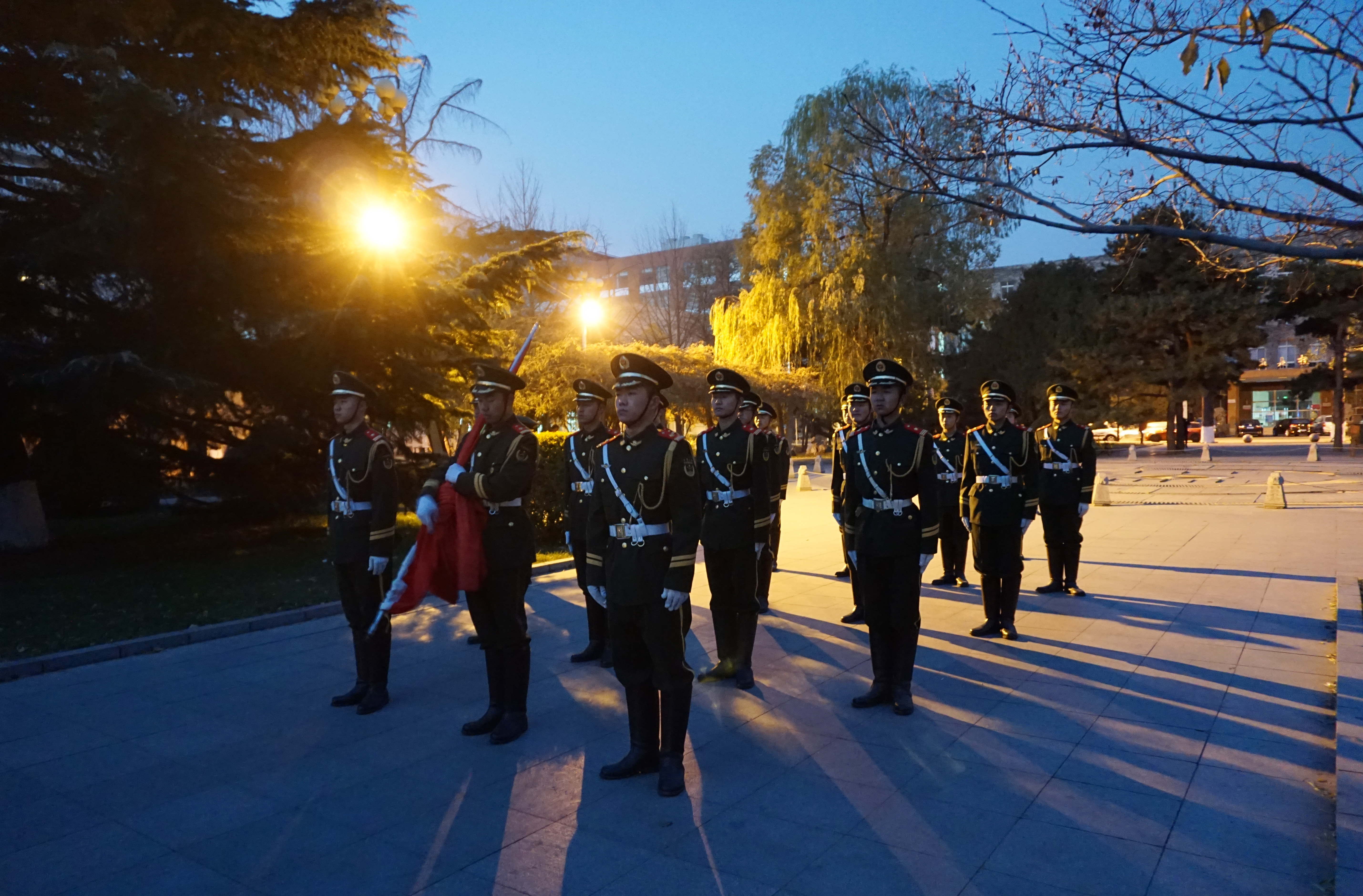 大雪将及,冬至未至,瑟瑟寒风,天色未明。彻骨的寒意抵挡不住我院2017级同学的谆谆家国情怀,意气风发的丹青赤子们整齐列队于国旗台两旁参加庄严的升旗仪式。