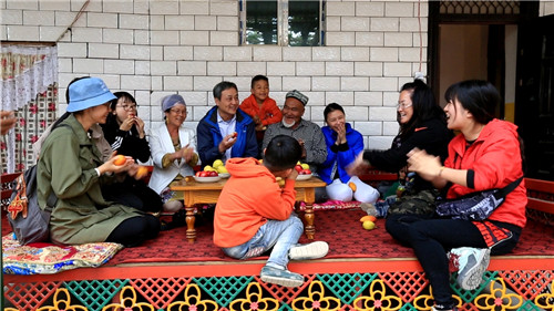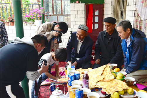 图-13 在克勒塔木村与维吾尔族一家唱起熟悉的新疆歌曲