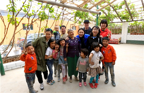 图-14 大手牵小手,人民大学的研究生与维族小学生合影