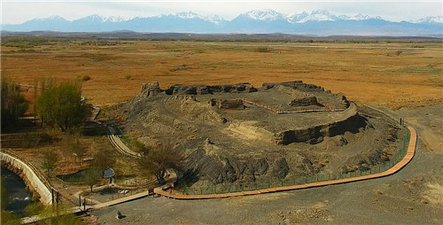 北庭故城位于今新疆维吾尔族自治区吉木萨尔县城北,地处天山北麓东段,准格尔盆地东南缘,是新疆最古老的古城之一。公元702年,武则天管辖天山以北包括阿尔泰山和巴尔喀什湖以西的广大地区,设立北庭都护府,唐玄宗先天元年始设北庭镇。作为北庭都护府的北庭故城,曾经一度在军事、经济、文化高度繁荣。