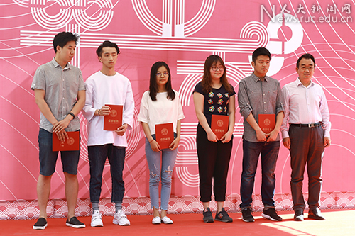 开幕式上,吴付来副书记为校庆主题标识设计活动中的获奖学生代表颁奖。莫宗斌获评“最优秀设计师”,江河觅源获优秀设计奖,徐梦诗、潘晶宇、牛洋获评“最优秀团队成员”。