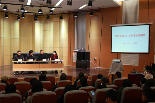 办学实际,在充分调研论证的基础上,厘清学院总体目标与发展战略,重点建设了“文艺复兴研究”国际学术科研平台、“技术艺术史”一流学科,打造国家文化艺术新型智库。丁方院长汇报了本学期我院在学科建设、人才培养、科研提升、学科建设、“双一流”项目申报实施、国际性提升、管理服务创新、组织机构建设等方面取得的成绩,向全院公开了2016年学院财务各项收支明细,并布置了下学期的工作计划。