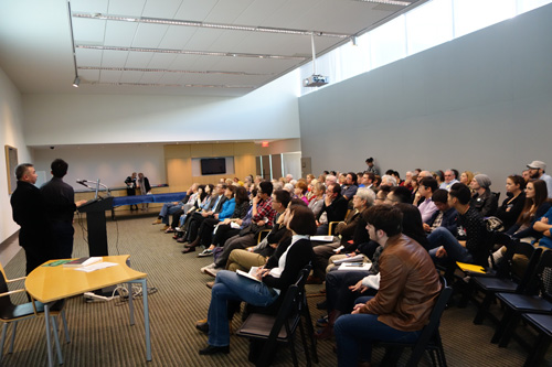 时值冬日,美丽的凤凰城温暖如春,正是一个飘满柠橙清香的季节,我院中国画专业师生与亚利桑那州立大学艺术与设计学院的师生们,在亚利桑那州立大学Step画廊举办了继2012年、2013年“反相对话”中美师生系列交流展之后的第三次展览。今年的交流展主题为“传统的革新”,展览期间出版了同名画册。亚利桑那州立大学副校长、艺术与设计学院院长及100多名美国师生及当地观众与我院师生一同出席了展览的闭幕酒会。展览期间,我院研究生的水墨作品深受美国观众的关注与喜爱,研究生参展作品约三分之一被当地藏家收藏。在凤凰城短短一周的交流访问期间,黄华三教授、高毅副教授作为访问学者应亚利桑那州立大学、凤凰城美术馆、亚洲艺术协会之邀,在凤凰城美术馆报告厅做了第九届Marilyn A.Papp中国画项目的主题演讲。黄华三教授的演讲题目为《中国当代水墨艺术现状》,概述了新中国成立以来的四代艺术家及作品。高毅副教授则现场演示了中国水墨人物写生以及中国画传统线描技法。在此次中国画学术研究项目中,凤凰城美术馆亚洲部展示了其丰厚的中国古代及近代作品馆藏。零距离大量观摩古代中国绘画精品,真切感受古代巨匠的笔墨气息,我院师生受益匪浅,感触极深。在布朗博士和马克教授的带领下,我院师生还参观了亚利桑那州立大学的教授工作室、画家工作室以及研究生工作室。在与美国教授、画家和同学们深入的交流与学习过程中,我院研究生对美国当代艺术教育,以及同龄人的创作思维及创作方法有了一个较为深入的认识与体会。凤凰城利桑那州立大学之行给同学们留下极为深刻的印象。
