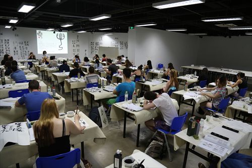 本期国际小学期书法班学生37人,来自法国、英国、加拿大、爱尔兰、意大利、以色列、芬兰等13个国家和地区。课程期间,性视频