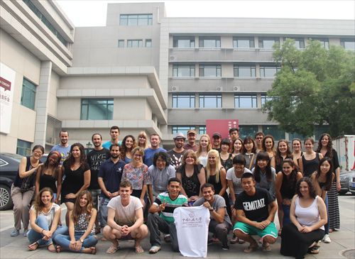 Summer School国际书法班课程圆满完成,师生一起在艺术楼前合影
