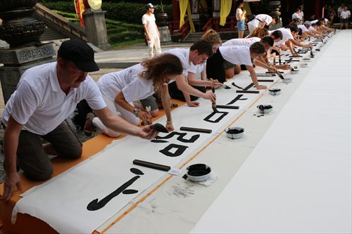 另外国际书法班师生为仙都风景区创作以歌颂仙都美好风光为主题的巨幅书法长卷