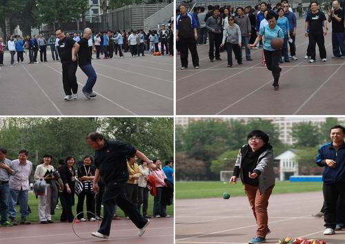田径运动会在学校体育场举行。我院20余名教职工报名参加了包括滚铁环、背夹球、运球接力、沙包掷准4个集体项目在内的共计8个项目的比赛,其中我院在运球接力的比赛中获得了三等奖的好成绩。在赛场上,队员们的加油喝彩声和欢笑声充满整个赛场。此次比赛也为各位老师提供了一个交流感情,展示自我的平台,体现了我院教职工良好的精神风貌。