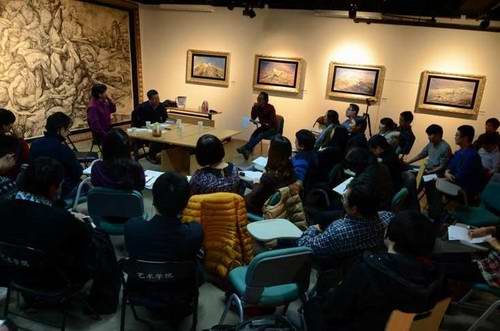 由丁方、牛宏宝共同主持的学术研讨会于29日下午在美术馆现场举行,会上师生们围绕画作展开了一系列热烈的学术讨论,受到学院师生的一致好评。