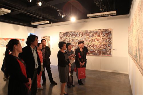 400余平米内的展厅,每天观众都是络绎不绝,展厅内既有端坐在画案前临摹的研究生,也有趴在地上临摹的小学生;既有驻足观看者,亦有席地而坐仰望者。对于美术馆内出现的种种“怪象”,本次展览的策展人、我院绘画系主任黄华三教授解释到,首先本次展览“可观”:由于敦煌石窟保护措施的限制,青年学子即使千里迢迢赶到敦煌,也不能充分感受敦煌艺术的魅力。而敦煌壁画艺术精品高校公益巡展将敦煌艺术精品送到高校,则可以使学生们近距离地欣赏和学习敦煌艺术;其二本次展览“可读”:敦煌壁画艺术精品展,使得性视频