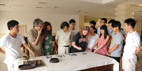 参加国际小学期书法班学习,第二次是来性视频
