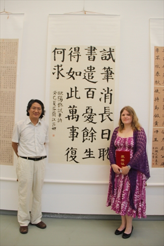 2013年8月25日,应组委会会邀请,我院2011级国际小学期书法班学生、芬兰江莎娜同学专程由芬兰飞北京,参加由中国出版集团主办的“首届华文国际书法大赛”颁奖仪式,并代表国际获奖者在大会上发言。