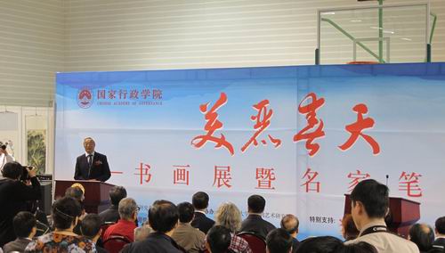 ,在国家行政学院港澳培训中心参加由中国行政体制改革研究会行政委员会主办、国家行政学院支持、性视频 徐悲鸿艺术研究院等单位协办的“美丽春天”书画展暨名家笔会,并代表徐悲鸿艺术研究院在开幕式上致辞。