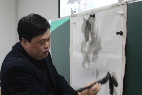 吴老师为同学们简述了中国水墨画的历史,并亲自示范了水墨葫芦的创作过程。正是