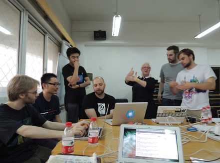创建人之一,资深教授,知名媒体艺术家Heide,以及两名舞蹈演员和5名编程技术人员,此行意在为项目能够在9月份的成功实施做一系列的测试和准备工作。