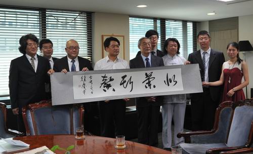 图09 代表团拜会首尔市政务副市长金炯柱(左4),赠送徐庆平教授书法作品“似兰斯馨”