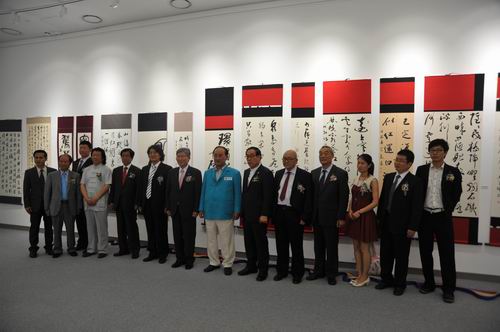 徐悲鸿艺术研究院院长徐庆平,韩国丽水市市长金忠锡,韩国丽水市议会议长金荣珪,韩国文化部世博会管委员会次长朴永大,中国书协理事、著名书法家吴震启、《书法》杂志主编胡传海,韩国书道联盟主席金荣基及中韩书法家代表、书法爱好者百余人出席开幕式。