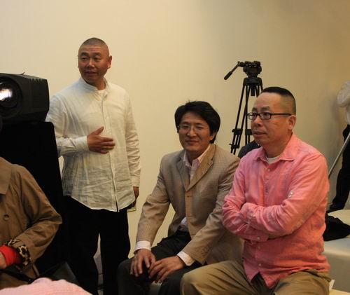 闫平与策展人陆蓉之亲切交谈