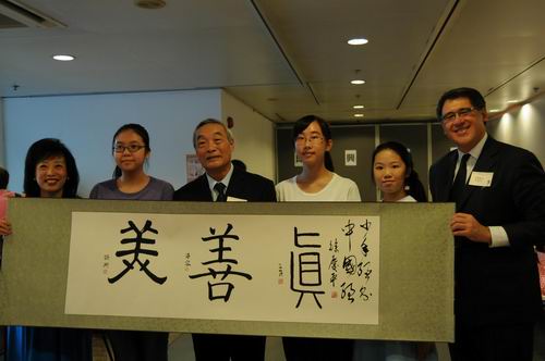 薛浣白副校长给获集体金奖的香港风采中学师生颁奖