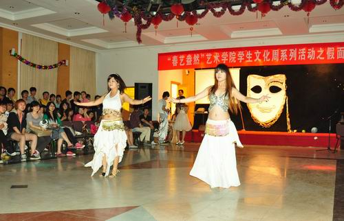 随后,精彩绝伦的节目又一次赢得了大家的喝彩,景观专业的李学和国画专业的袁媛同学为大家献上印度风情的肚皮舞;音乐系的张曦媛同学一展美妙歌喉,送上一曲深情的《三百六十五个祝福》;还有平面设计系的徐萌同学也带来一首真情流露的音乐演奏,大家才情尽展,为欢乐的舞会增添了绝美的一笔。