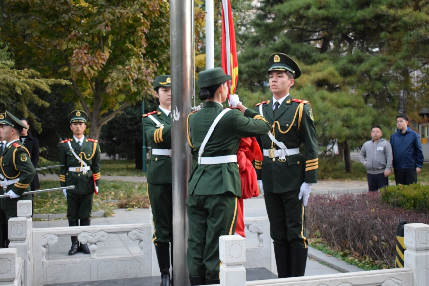 2018级全体本科生进行了升国旗仪式。学院党务秘书吴玥老师参与了此次升旗活动。
