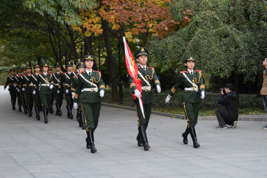 国旗护卫队整齐划一地列队走来