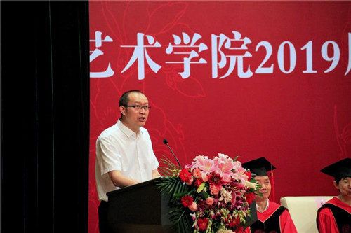 在毕业典礼环节中,刘明才宣读2019届优秀毕业创作奖、优秀毕业设计奖、优秀表演奖、优秀毕业论文奖(艺术学硕士)、最具潜质奖毕业生名单,性视频