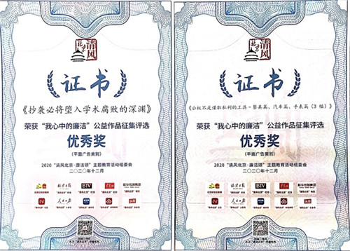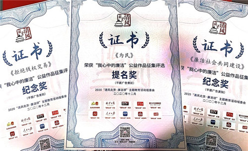 下发“我心中的廉洁”公益作品征集活动获奖证书。性视频