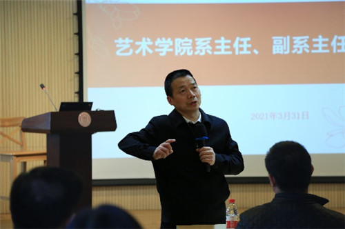 的今天。张书记还对新当选的系主任、副主任表示热烈祝贺,并对他们未来的工作提出了很高的期望。张书记表示系领导是需要在基层一线打拼的角色,各系虽然规模不大,但“麻雀虽小,五脏俱全”,工作非常细碎繁琐,各系领导需要转换角色,把系当做自己的家,从主人翁的角度来带好队伍,建设本系。张书记还强调在学科上各系有着非常重要的代表意义,分别代表着中国最优秀的文科大学里四个艺术类一级学科,系主任和和副主任一定程度上是学科带动人,必须要有责任和担当。无论从大的宏观环境还是微观环境来看,我们学院正处于历史的机遇期,各位系领导要凝心聚力,抓住机会实现弯道超车。张书记还在会上宣布,从本学期开始实行院领导班子和各系的联系制度,联系人定期轮换,帮助各系处理问题,协调各系间发展。最后,张书记希望大家在学院党政班子的领导和各系主任、副主任的带领下以更加积极昂扬的风貌继续为学院发展增砖添瓦,使学院整体工作迈上新的台阶。