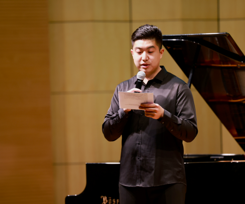 颁奖仪式结束后,主持人2019级本科生杨德昭宣布音乐比赛获奖学生音乐会正式开始。本次音乐会上演了古今中外的经典之作,且形式丰富,有钢琴独奏、声乐演唱、管弦乐独奏及弦乐四重奏,其中许多经典的的中国作品更受观众们的青睐。