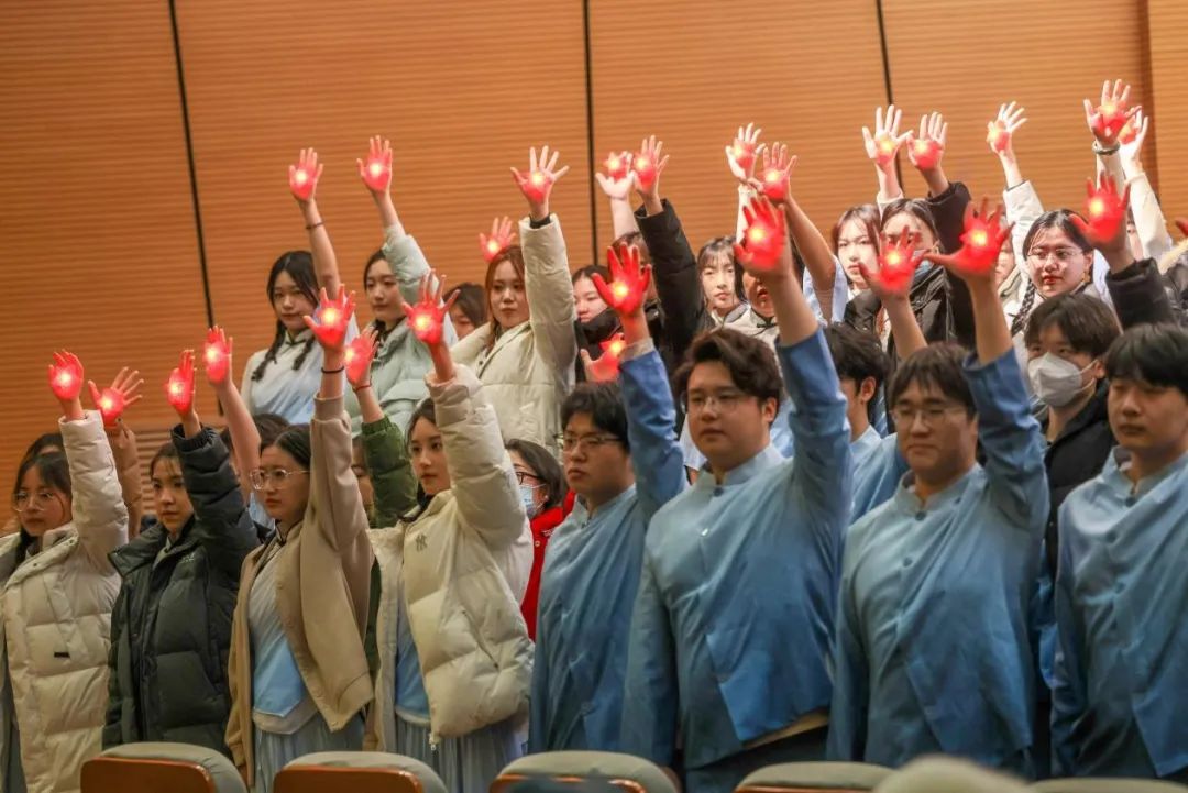 党委的带领下、团委的直接指导下,此次活动台前幕后参与的师生近200名。演员们对《西江月·井冈山》的精彩演绎充满了民族自豪感,展示井冈山道路是无比威力的和无穷魅力的第一声惊雷、第一首战歌;也是点燃星星之火成为燎原之势的第一声呐喊、第一支号角,不仅凸显了原词中作者作为英明统帅在战略上藐视敌人的豪迈气概,还展现了我军战士们的革命乐观主义精神和坚不可摧的意志力量。