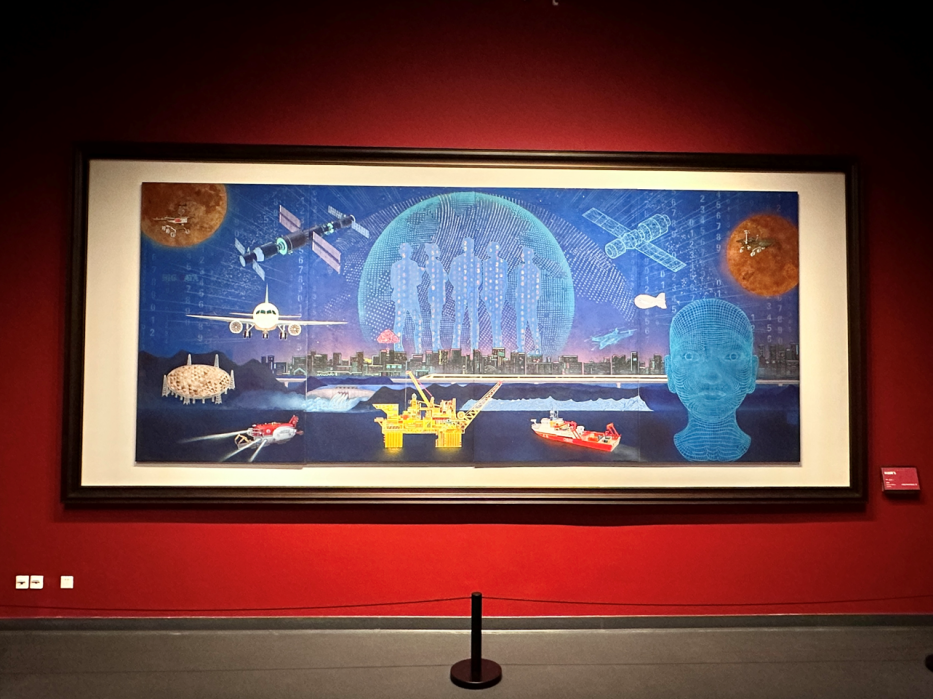 值得一提的是,我院沈尧伊教授的绘画作品《八七会议》和黄华三教授的绘画作品《科技腾飞》在展览馆四层的“光辉历程 时代丹青——主题美术作品展览”中展出。同学们在此驻足欣赏,细细品味其中的内涵,对我院一贯坚持的“为人民而艺术”的办学与创作理念有了更加切实的体会。