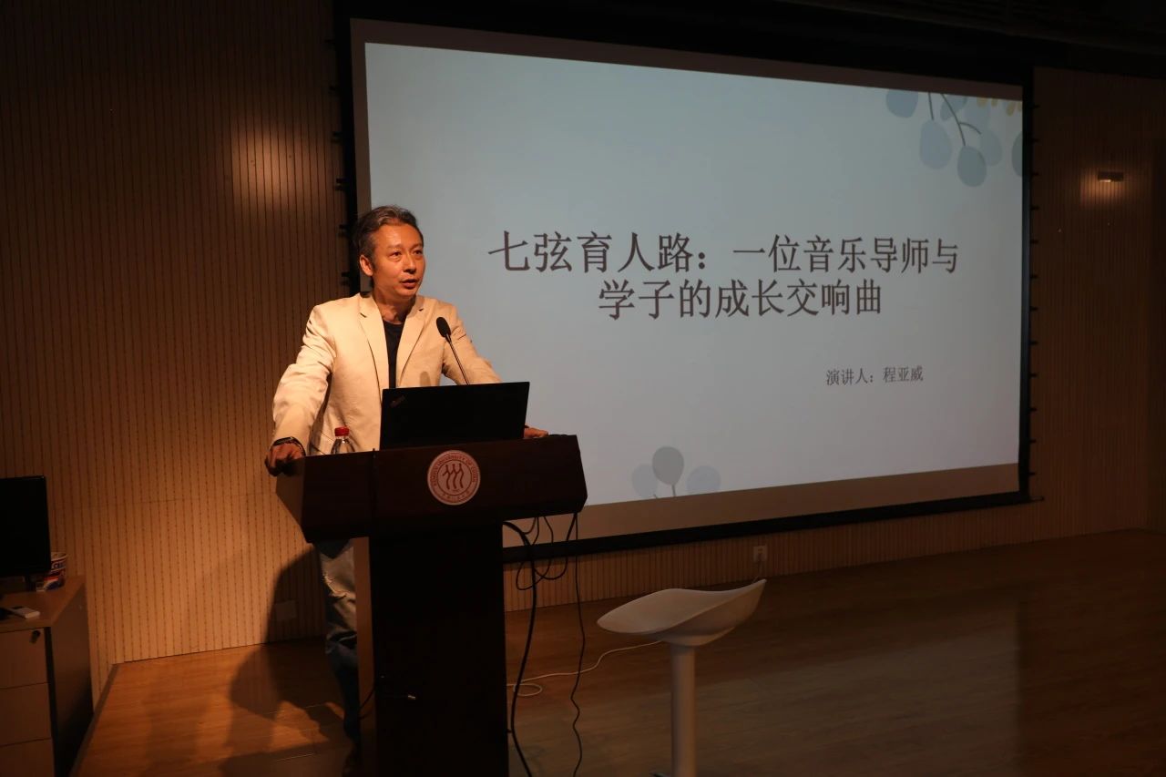 音乐系副教授程亚威以《七弦育人路:一位音乐导师与学子的成长交响曲》为题,讲述了他在培育学生从本科到研究生的课堂学习、从琴房到各地音乐厅的舞台实践这段跨越七年的教育接力中,诠释出新时代“三全育人”理念的深层意蕴。他用琴弓作教鞭,通过个性化育人图谱、室内乐教学深化、管弦乐团协作共生、中西文化交织等方法,在弦乐教育中走出了一条铸魂育人的创新之路。