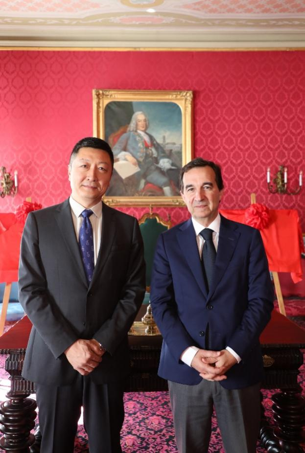 校长马怀德、中国驻葡萄牙大使杨义瑞、科英布拉大学副校长若奥·努诺·卡尔文·达席尔瓦出席仪式并致辞,共同为中葡文明交流互鉴合作研究中心揭牌。