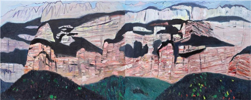 王克举教授近期作品,视角从早期的叙事性逐渐转变成纯粹的秩序语言,不再困囿于局部笔触,而是以完成对整体节奏秩序框架的支撑为目的,同时利用感官性的色彩诱惑逐渐建立起自己的色彩谱系,看似眩目的色彩背后是一个纯粹的精神升华。王克举作品的结构排列有符号化的追求,这不同于一般写生画家只满足于表面的抒情,他想让不同的色彩、线条在一种抽象的内在秩序掌控下成为鲜明的符号,让他眼前自然景色成为自己心中的符号场。这种创造性的风景画,是借在场之际,直接面对自然寻找符号源,让在自然中创造的源生符号成为图像化时代的人文彰显。把塞尚式对风景的在场实验性与中国传统山水画的诗化冥想融为一体暗含中西文化交互的观看方式,既有在场体验的实验性,又具有转承人文情感的方法,它不仅转承着前人的观照方法,同时还将东西方艺术对自然的不同观看方式同时纳入自我的感觉支配中,让自然景象之中的在场成为现实感的即兴抒怀。
