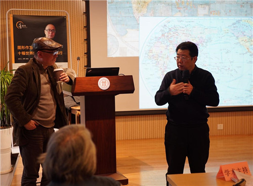 在学术评议阶段,牛宏宝教授以“颠覆、表征、隐喻”三个关键词概括了本场讲座的内容。牛宏宝认为,李军老师所讲的内容“颠覆”了日常观看地图的传统经验,“表征”了知识形成过程中基本的格局和关系,“隐喻”了一场关于知识、跨文化的旅行。基于讲座内容,牛宏宝针对马可波罗之后欧洲对于东方的想象推动现代世界形成这一现象,提出在此过程中,中国是否有或者说如何想像西方的问题。在互动环节,李军教授与参加讲座的师生展开了深刻而富有启迪的讨论。