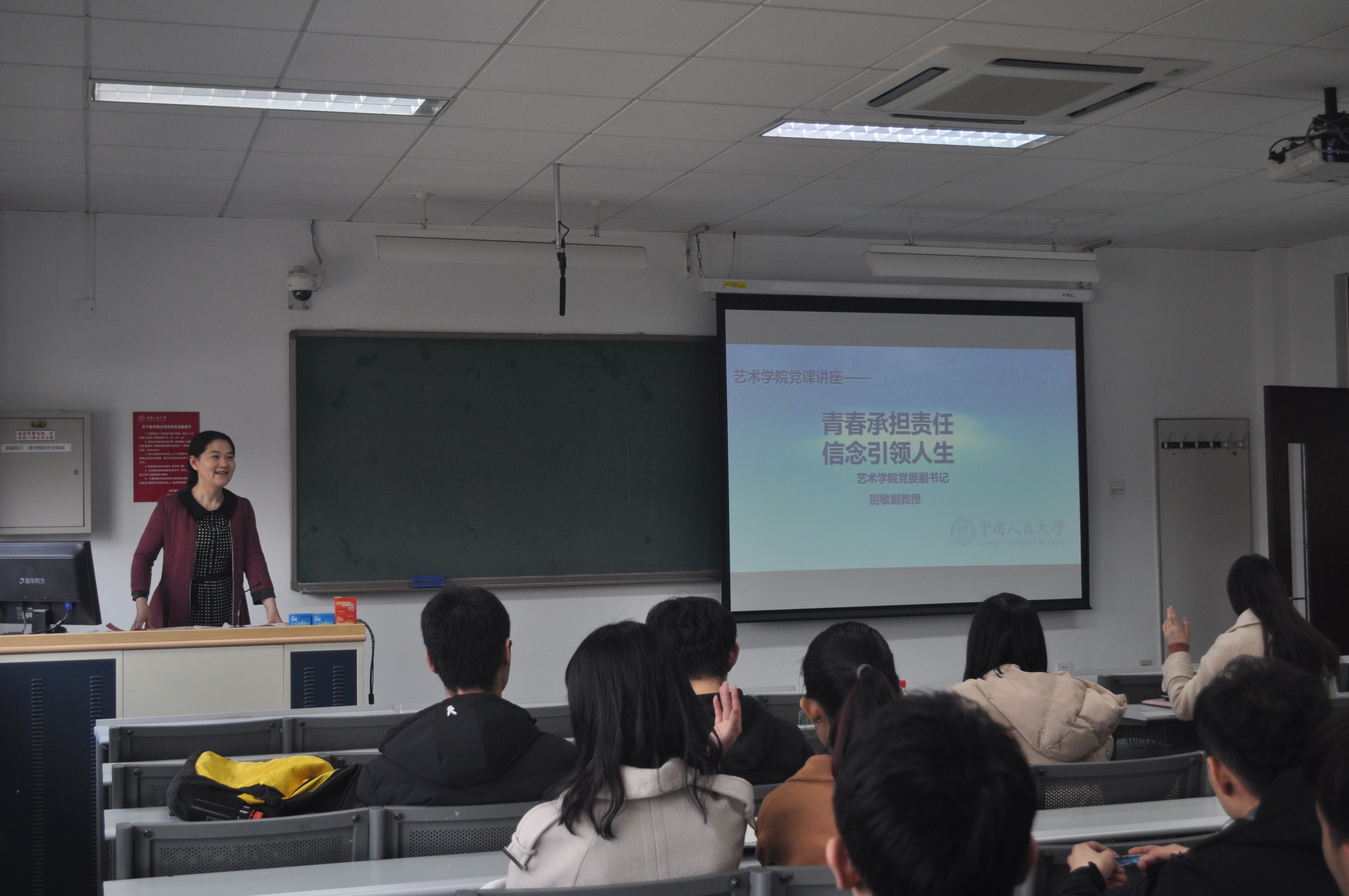 第十二期党校在公教3306开课,院党总支副书记别敏副教授主讲了题为“青春承担责任 信念引领人生”的第一堂党课,党务秘书陈光曦老师参加了此次课程。