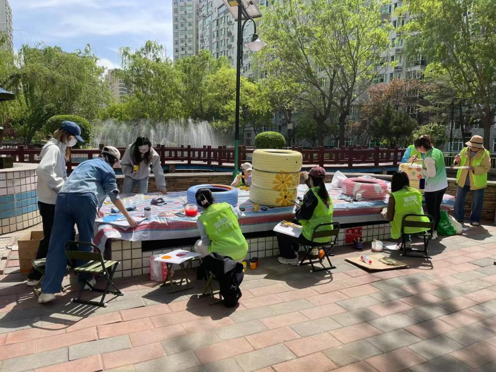 作为参与其中的“青春创艺力量”,党支部积极承担了社区微花园轮胎景观小品与背景板彩绘的设计工作,创作“育见花开,同心向未来”主题方案,力求以富有生命力的艺术语言为社区环境注入更多色彩。