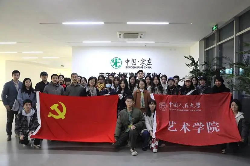 在通州校区的参观结束后,师生党员和入党积极分子前往通州区宋庄镇小堡村,在宋庄艺术区党群服务中心参观宋庄30年大事记展览,了解宋庄艺术区发展历程。各位师生在参观中了解到,30年来宋庄艺术区名家荟萃,艺术门类众多,形成了各具特色的工作室和代表性艺术机构,打造了艺术活动、艺术旅游、艺术市集的特色品牌,近年来更是以一系列杰出艺术作品在北京城市副中心建设、抗击新冠肺炎疫情、北京冬奥会中发挥了重要的宣传作用,与我院“为人民而艺术”的教育理念和创作导向不谋而合。