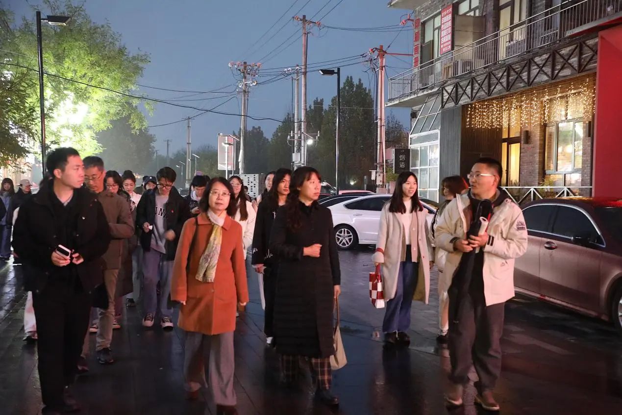 最后,师生党员和入党积极分子步行参观小堡南街和国防艺术区,了解小堡村艺术休闲消费、艺术创意产业现状。参观过程中,宋庄镇小堡村挂职干部陈晖博表示,小堡村希望在艺术振兴乡村、综合实践教育等方面与我院探索更多合作。各位师生纷纷表示,将运用好这一产学研深度融合的平台,在创作实践的过程中创造更高的艺术价值。