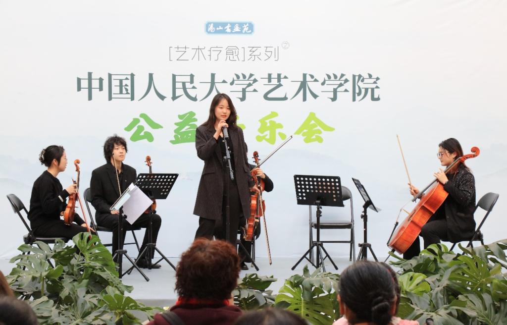 室内乐金课的学生们,倾情演绎了充满古典韵味的《宋词两首》、优美典雅的《莫扎特降B大调第一弦乐五重奏K.174》,以及中国经典佳作《情深谊长》。一首首中外名曲在大厅内悠扬回荡,如同甘霖滋润着现场患者和白衣天使的心田。