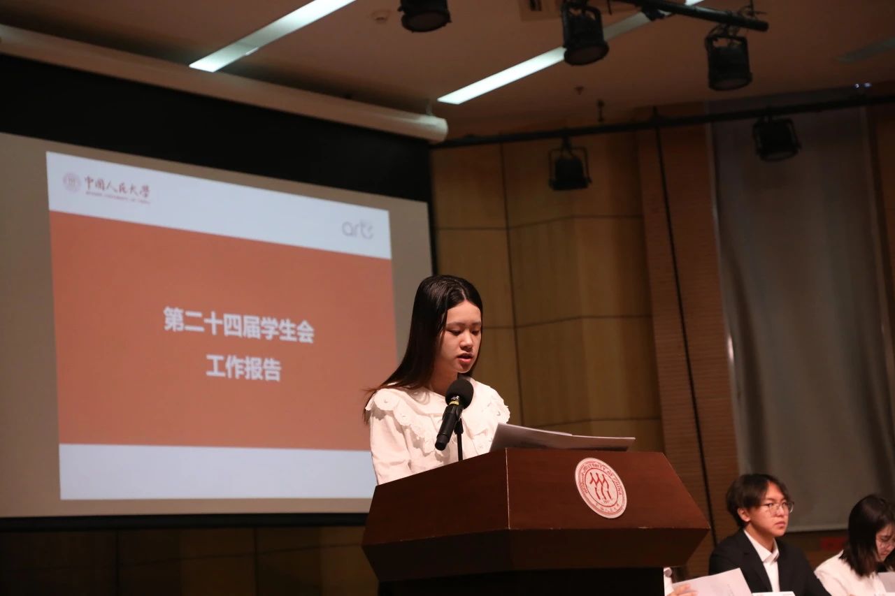 随后,第二十四届学生会执行主席熊艺涵代表学院第二十四届学生委员会进行工作报告,在汇报中全面总结了性视频 第二十四届学生会过去一年的总体工作,报告充分体现了性视频 学生会在过去一年,以习近平新时代中国特色社会主义思想为指导,充分发挥学院“艺术赋能、文化育人”的鲜明特色,在思想引领、宣传推广、文体活动、文创赋能等多元领域开展扎实有效的工作,切实服务同学成长、助力学院发展,圆满完成了各项工作目标。