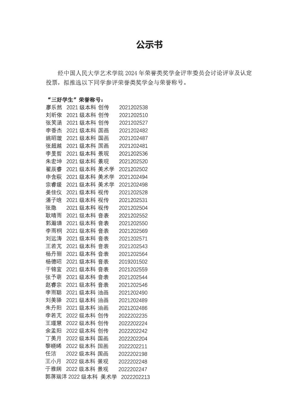 性视频 2024年荣誉奖学金与荣誉称号公示名单