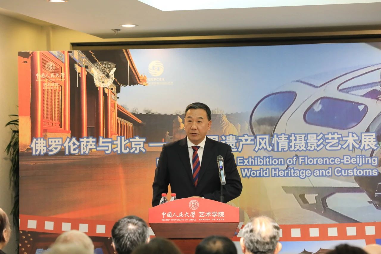 为此次展览所做的精心准备表示感谢。他表示,北京作为中国的首都,拥有悠久的历史和丰富的文化遗产,佛罗伦萨是意大利文艺复兴的摇篮,两者通过摄影艺术实现了跨越时空的对话。此次展览不仅是两国摄影师杰出作品的展示,更是两国之间深厚的尊重和友谊纽带的证明与象征,也是代表东西方的两个标志性城市的世界遗产之间的永恒对话,展现了佛罗伦萨的文艺复兴遗产和北京的千年传统与创新,通过摄影这一艺术形式,将东西方两个标志性城市的世界遗产紧密相连。