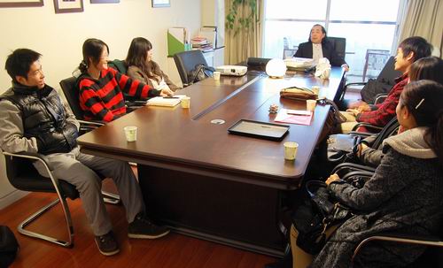 前往北京理想创意艺术设计公司参观的是设计系二、三年级视觉传达设计专业的研究生以及来自台湾辅仁大学的交换研究生。师生们受到了邵新先生的亲自接待,他热情地介绍了公司历史、发展规模、成功案例等情况。理想公司的辉煌业绩让同学们赞叹不已。随后,邵总与同学们进行了深入座谈,耐心细致地解答同学们提出的问题。交谈主题涉及视觉设计及相关问题的方方面面,从具体的项目经历到宏观的行业展望、从汉字字体到“设计之都”的申办等等以及设计师待遇改革等具体问题。大家畅所欲言,气氛热烈。