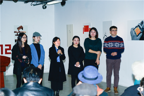 接下来,吴文越副教授介绍了此次展览的缘起和目的:第一,这次展览是十多年来对自己设计的反思总结与回顾;第二,是希望和大家进行经验分享和交流。最后,吴老师感谢学校及学院的支持,感谢同学们在展览期间辛苦的工作。