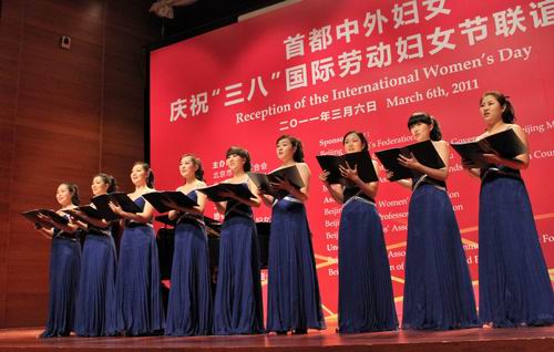 2011年3月6日,在国家会议中心举办的首都中外妇女庆祝三八国际劳动妇女节联谊演出活动中,来自北京各界的中外妇女代表欢聚一堂,共同庆祝国际劳动妇女节。
