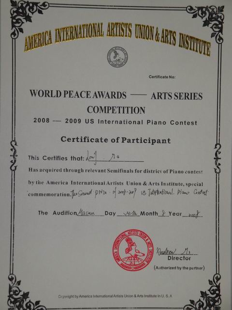 音乐系马龙同学在钢琴比赛中获奖