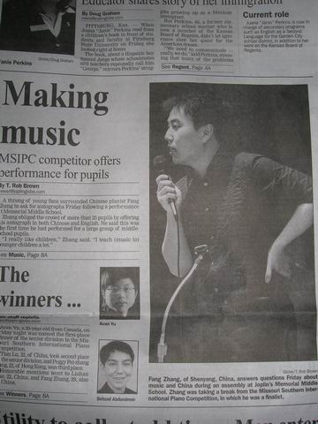 音乐系青年教师张放,于2008年4月26日在美国「第十二届南密苏里国际钢琴大赛」(The Twelfth Missouri Southern International Competition)高级组别中获得荣誉奖。这是他在两年内第二次在国际钢琴赛事中获奖。