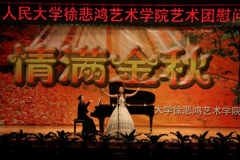 艺术团赴国家教育行政学院,为正在那里学习的全国28期高校中青年干部培训班、全国各县、市教育局长班、全国中小学校长培训班的学员们举行了一场以“情满金秋”为主题的慰问演出。